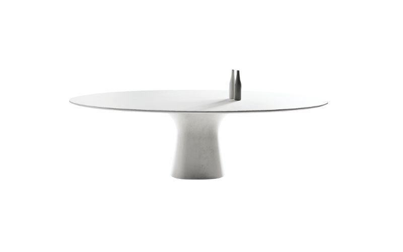 Il tavolo Podium di Bontempi è disponibile con piano ellittico,...