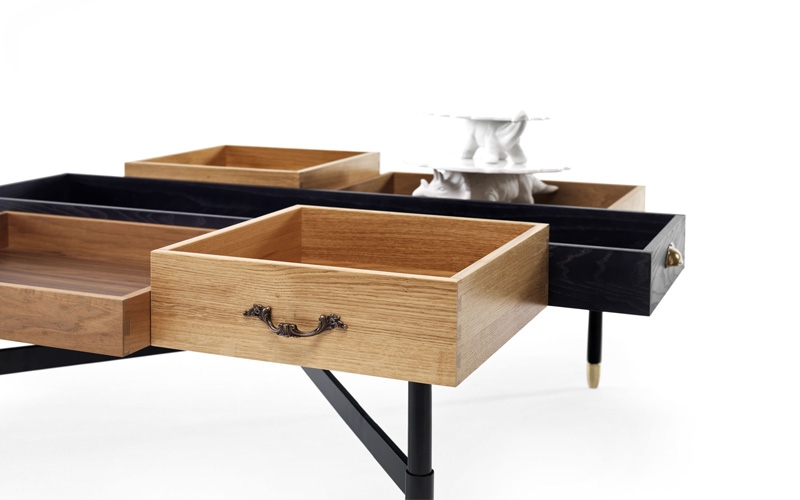 Un altro oggetto che vi proproniamo è il tavolino contenitore The dreamers in legno massello e gambe in metallo con puntali in ottone tornito, che sembra formata da cassetti di vecchie credenze, in linea con le tedenze attuali vengono in questo oggetto proposti complemeti vintage per creare nuove soluzioni d'arredo.