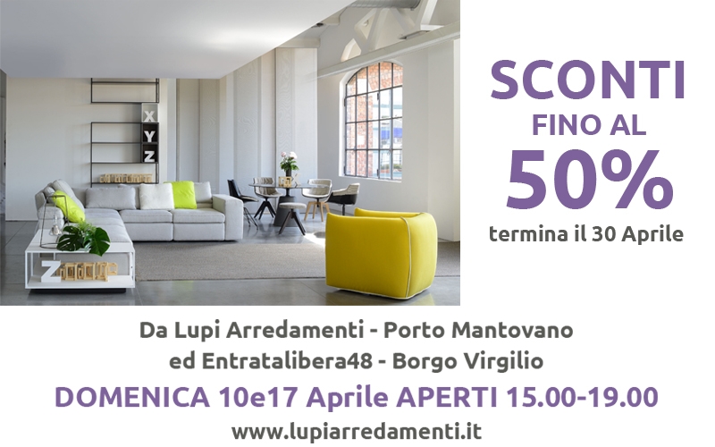 Lupi Arredamenti ed Entratalibera48 vi aspettano domenica 10 e 17 aprile. Gli sconti continuano...Affrettatevi