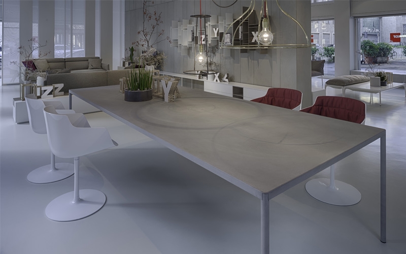 Il tavolo Robin di Mdf Italia è un tavolo rettangolari con finitura monocromatica in cemento naturale, adatto a chi vuole dare un tocco di design alla propria casa.