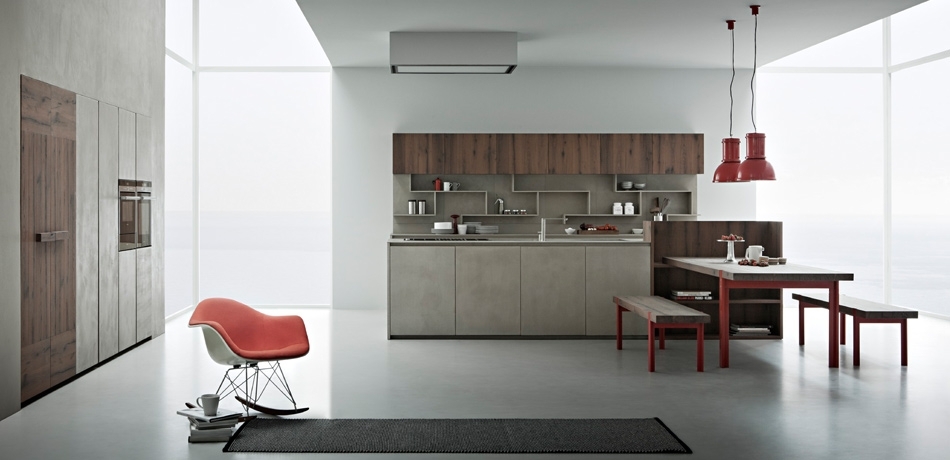 Zampieri propone la nuova linea K, una lavorazione artigianale che si ritrova anche nei materiali, ad esempio nella realizzazione della finitura in resina di cemento, una cucina che si caratterizza per la pulizia delle linee.