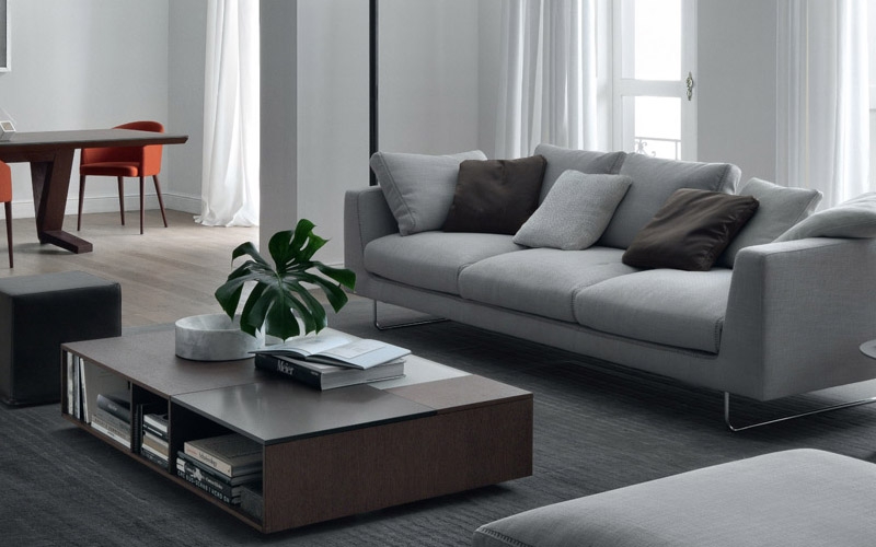 Al centro della zona conversazione, di fianco o davanti ai divani, il tavolino diventa protagonista. E' bene che abbia dimensioni importanti e sia raggiungibile dal maggior numero di posti a sedere. Non deve essere troppo vicino nè troppo lontano dalle sedute, a circa 50-70 cm.