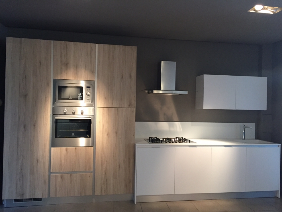 Simplicia di Home Cucine, è una cucina lineare caratterizzata dalle basi con una profondità di 70 cm, e dal top e dall'alzatina in Corian.