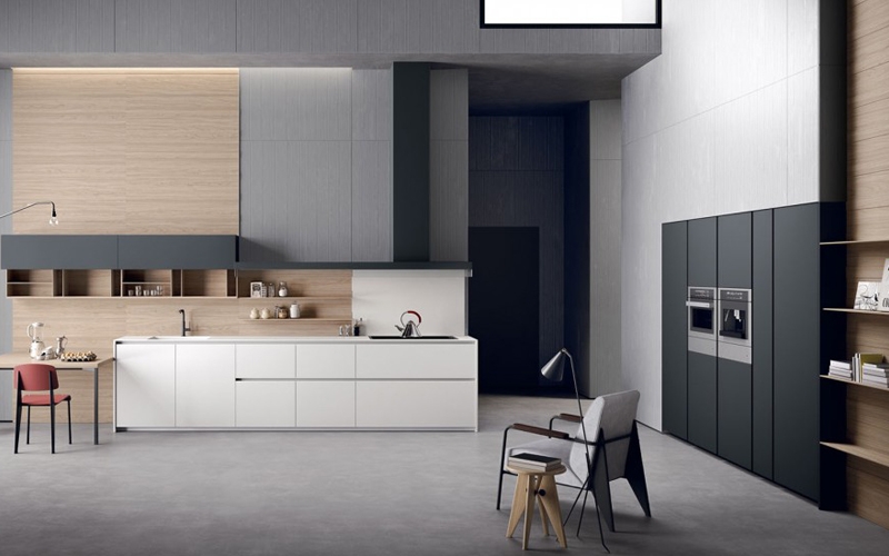 Axis di Zampieri è una cucina semplice e lineare che conquista al primo sguardo. Caratterizzata dall'ampia scelta di finiture e arricchita da originali elementi a giorno asimmetrici da poter inserire a piacimento. Questa cucina è disponibile con top e anta in pratico Fenix.