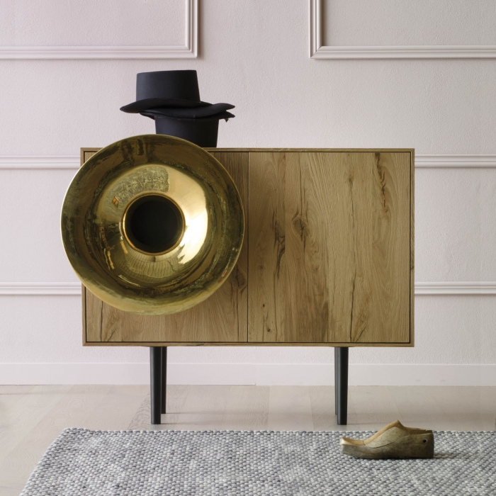 Caruso, simpatica ed originale credenza con tromba che ricorda i grammofoni del '900. Questo mobile da soggiorno è completo di impianto audio con connessione Bluetooh 4.0 nascosto nella tromba, dotato di una qualità di uscita dell'audio sorprendente.