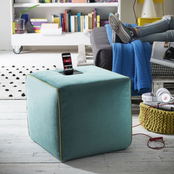 Zeppelin di Felis, simpatici e comodi pouf che ti consentono di essere sempre carico e connesso. Puoi ascoltare la tua musica preferita nel living, in camera con un solo impianto stereo mobile, due casse e subwoofer, posizionabile a piacere, controllato da una dock station di ultima generazione.