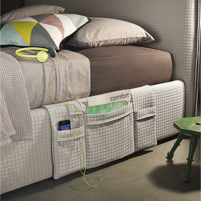 Tim di Felis, è un letto matrimoniale imbottito con tasche laterali portaoggetti. Questo arredo non è tecnologico, non è dotato di sistemi all'avanguardia, non emette musica, non può essere collegato a nessun dispositivo elettrico ma è molto comodoce pratico per riporre la tecnologia. Si possono usare le tasche laterali del letto per riporre tutti questi apparecchi in modo ordinato e sempre a portata di mano.