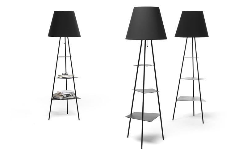 Tri.be.ca di Mogg, è una lampada da terra adatta sia all'ambiente di un soggiorno che in un angolo studio. Questa moderna lampada è dotata di una comoda presa USB collocata sotto ilripiano inferiore.