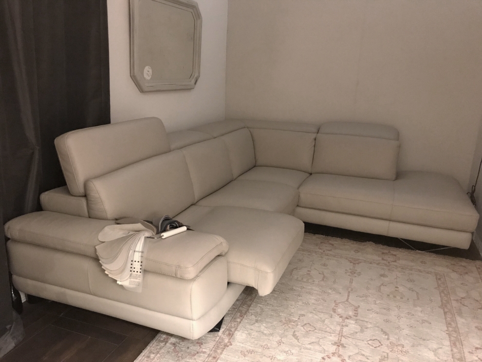 Divano Shine di Delta Salotti dalle linee morbide e femminili, è dotato di comodi poggiatesta regolabile, per donare totale relax. Il divano è rivestito in pelle con piedino in acciaio, misura cm L 304 x P 246 x H 83/99