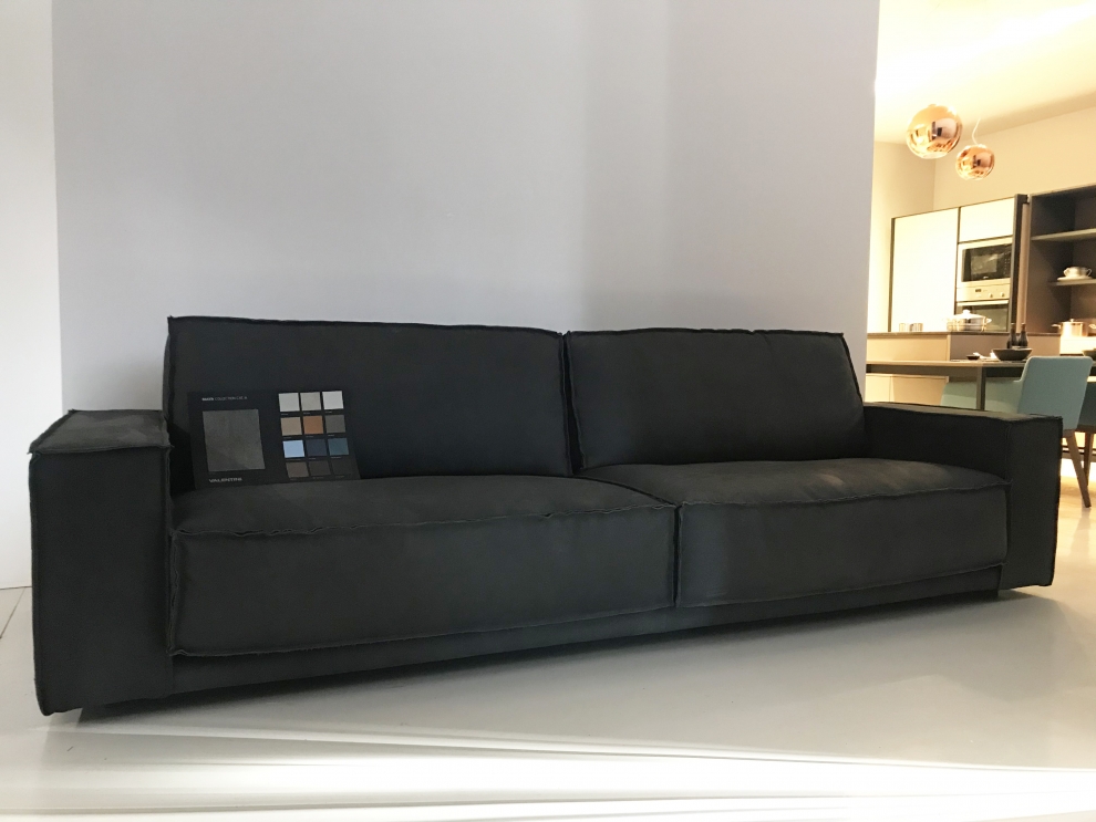 Il divano lineare in pelle Rafael New di Valentini è scontato del 40%. Il divano Rafael è caratterizzato dalle cuciture con i bordi al vivo, e dal rivestimento che aderisce in modo sublime come fosse un vestito su misura, in pelle antracite.
