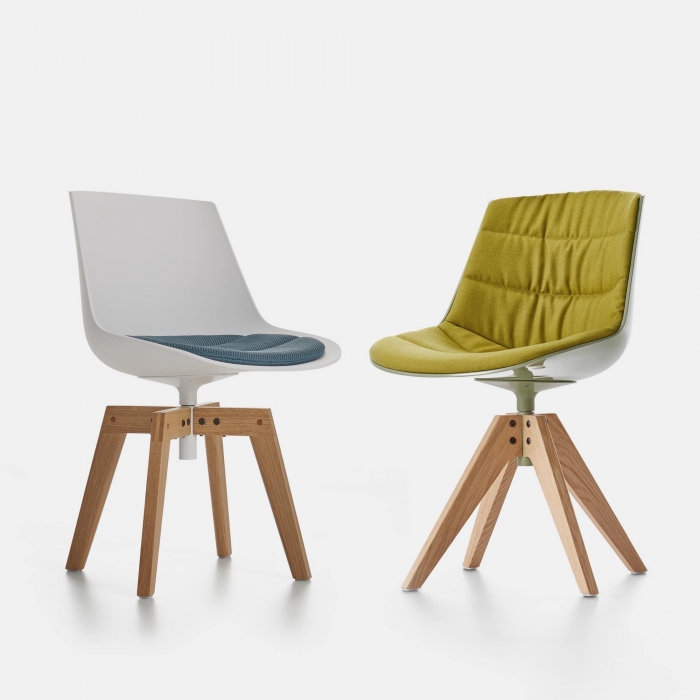 Sedie imbottite girevoli e fisse della serie Flow Mdf Italia.