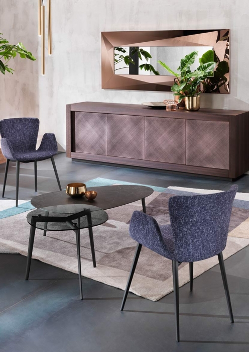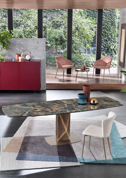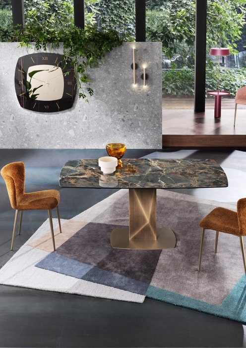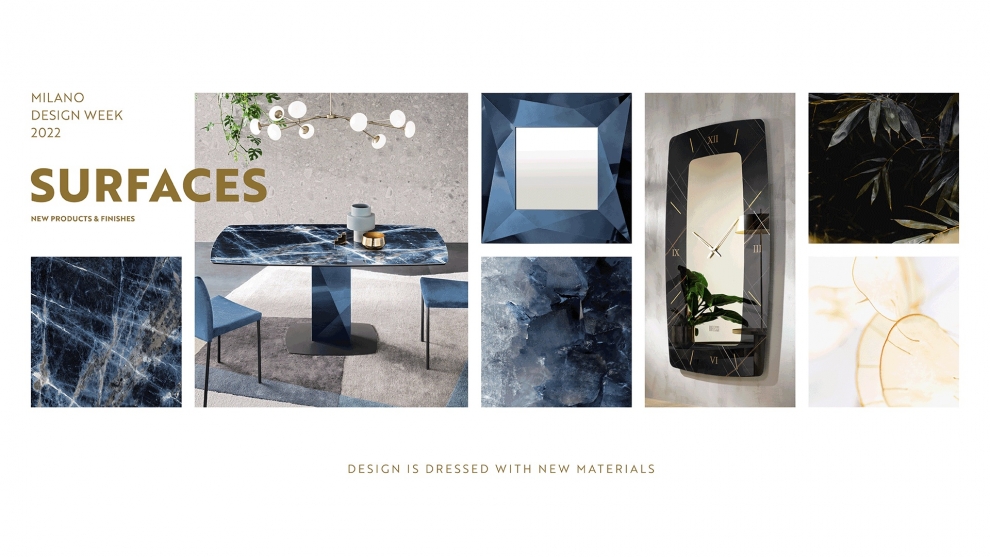 Superfici artificiali, metalliche e di palette futuristiche incontrano le nuove superfici ispirate al mondo minerale, sfaccettate e di colori intensi, che impreziosiscono arredi e complementi.