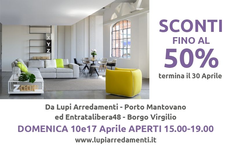 Lupi Arredamenti ed Entratalibera48 vi aspettano domenica 10 e 17 aprile. Gli sconti continuano...Affrettatevi...