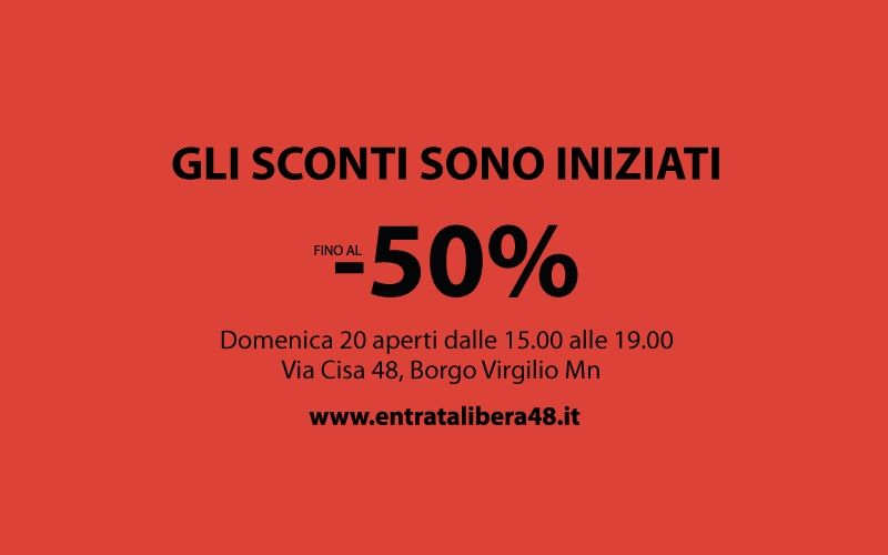 Entrata Libera48 vi aspetta con Sconti Eccezionali fino al -50% su tutti i prodotti. Dal 10 Marzo...Affrettati gli sconti durano poco tempo.......