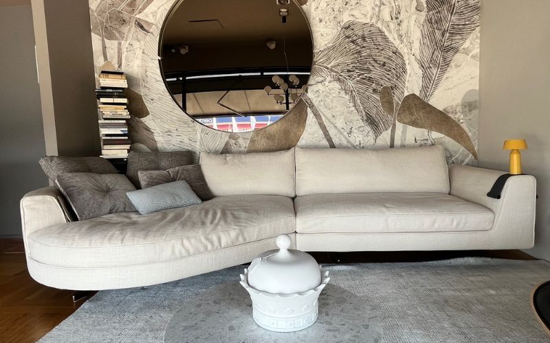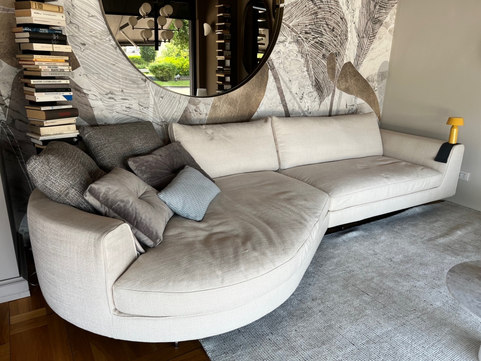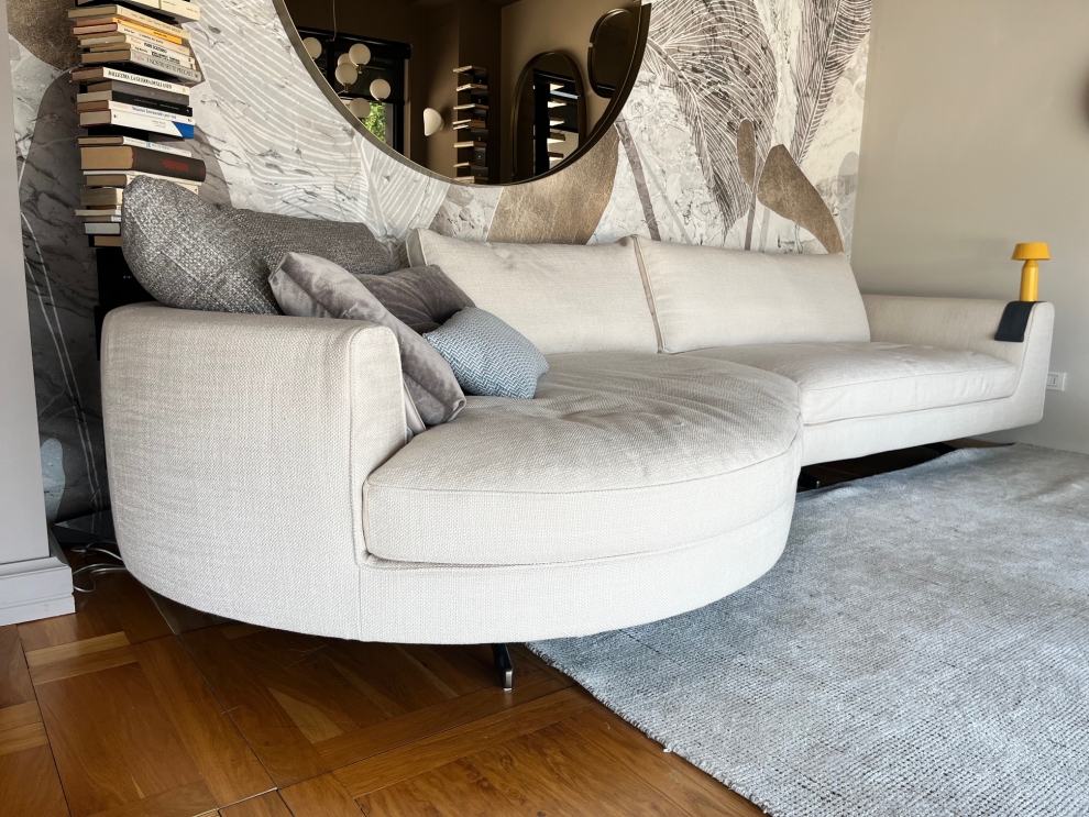 Il divano Eduard New del marchio Valentini, proposto in offerta nella versione con isola curva, è un'icona di stile e comfort. Caratterizzato da una forma avvolgente, offre ampie sedute e cuscini riempiti con morbida piuma d'oca, garantendo un'esperienza di relax senza pari.