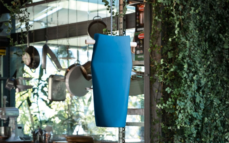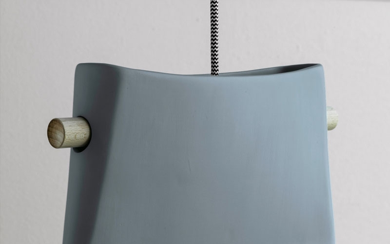 Un tubo schiacciato e deformato è la prerogativa dello studio di Dent, una eterea lampada a sospensione dove l'impego del legno e della ceramica rende il risultato unico ed estremamente delicato. È disponibile in due diverse dimensioni.