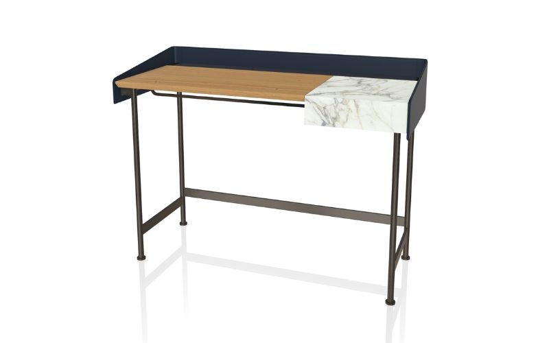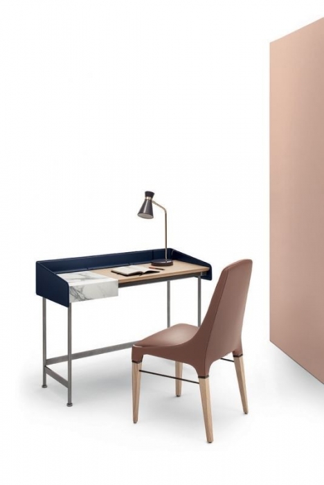 Secret di Bontempi nasce con la doppia funzione di coiffeuse e scrittoio. Dalle linee sofisticate ed esclusive, composto da un piano d'appoggio in legno e una struttura in acciaio laccato. Il prezioso vano portaoggetti, in supermarmo, contiene un organizer per riporre in ordine i propri oggetti.