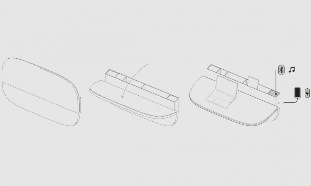 Hai esigenze particolari, dimensioni, finiture, quantità, trasporto, ecc…?Dune è uno scrittoio pieghevole, disponibile con presa usb per ricaricare device e sistema audio.