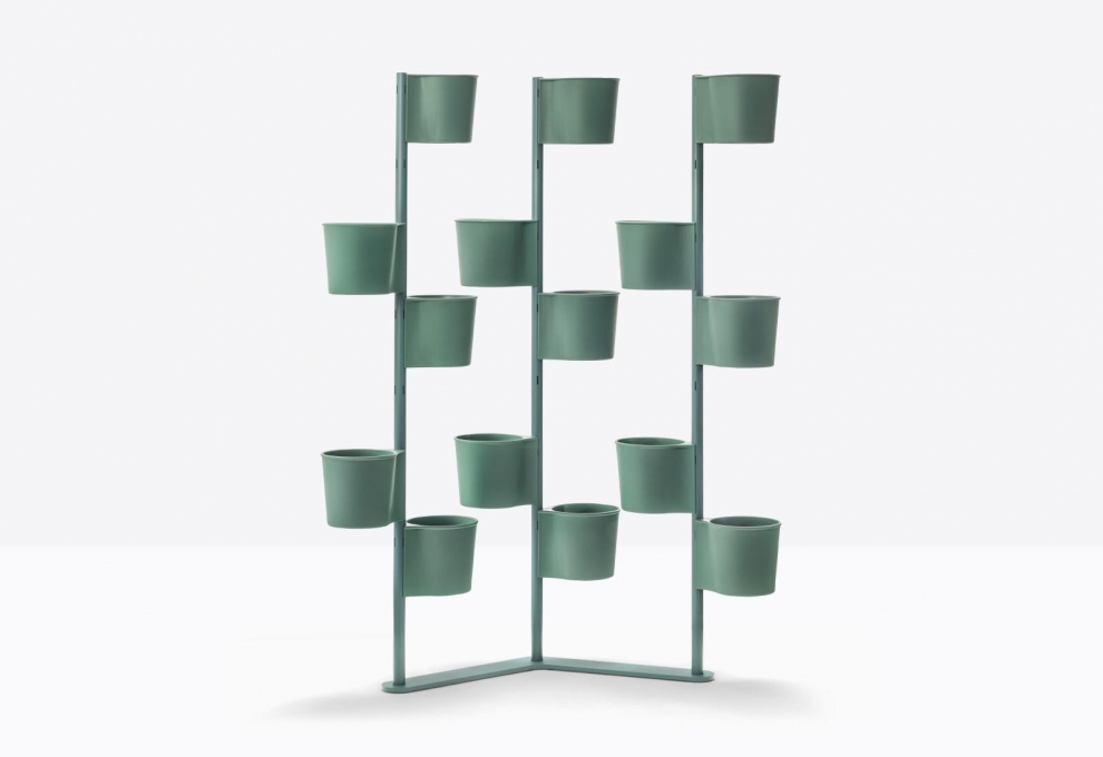 Hai esigenze particolari, dimensioni, finiture, quantità, trasporto, ecc…?Hevea Partition è un complemento d’arredo versatile che permette di comporre layout e pareti verdi in spazi lavorativi ed hospitality. Un sistema portavasi composto da una base sagomata e da tre colonne in acciaio al quale vengono agganciati quindici vasi in polipropilene. I vasi si fissano in modo semplice e intuitivo e possono essere posizionati contrapposti tra loro o a spirale. Gli elementi di Hevea Partition sono uniti meccanicamente e, di conseguenza, facilmente separabili per consentire la pulizia dei vasi e per un corretto smaltimento dei diversi componenti a fine vita del prodotto. É possibile agganciare ulteriori vasi alla struttura, acquistabili separatamente.