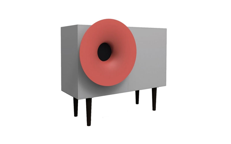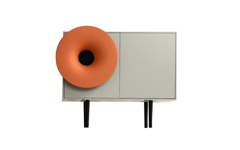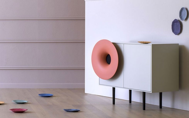 Madia Caruso di Miniforms progettata in mdf dotata di un sistema audio Ho-Fi di ultima generazione. Con il particolare altoparlante in ceramica, che rende omaggio ai vecchi grammofoni.