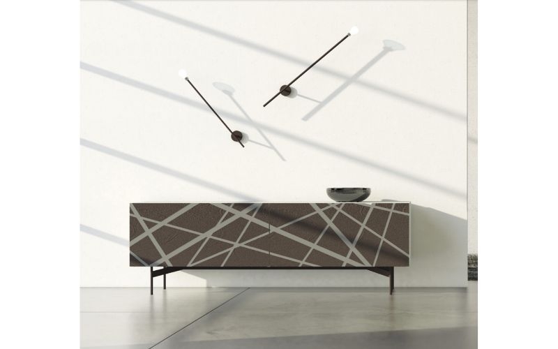 laccato opaco grigio alpaca con bassorilievo 31 cemento bruno vulcano, zoccolo laccato
