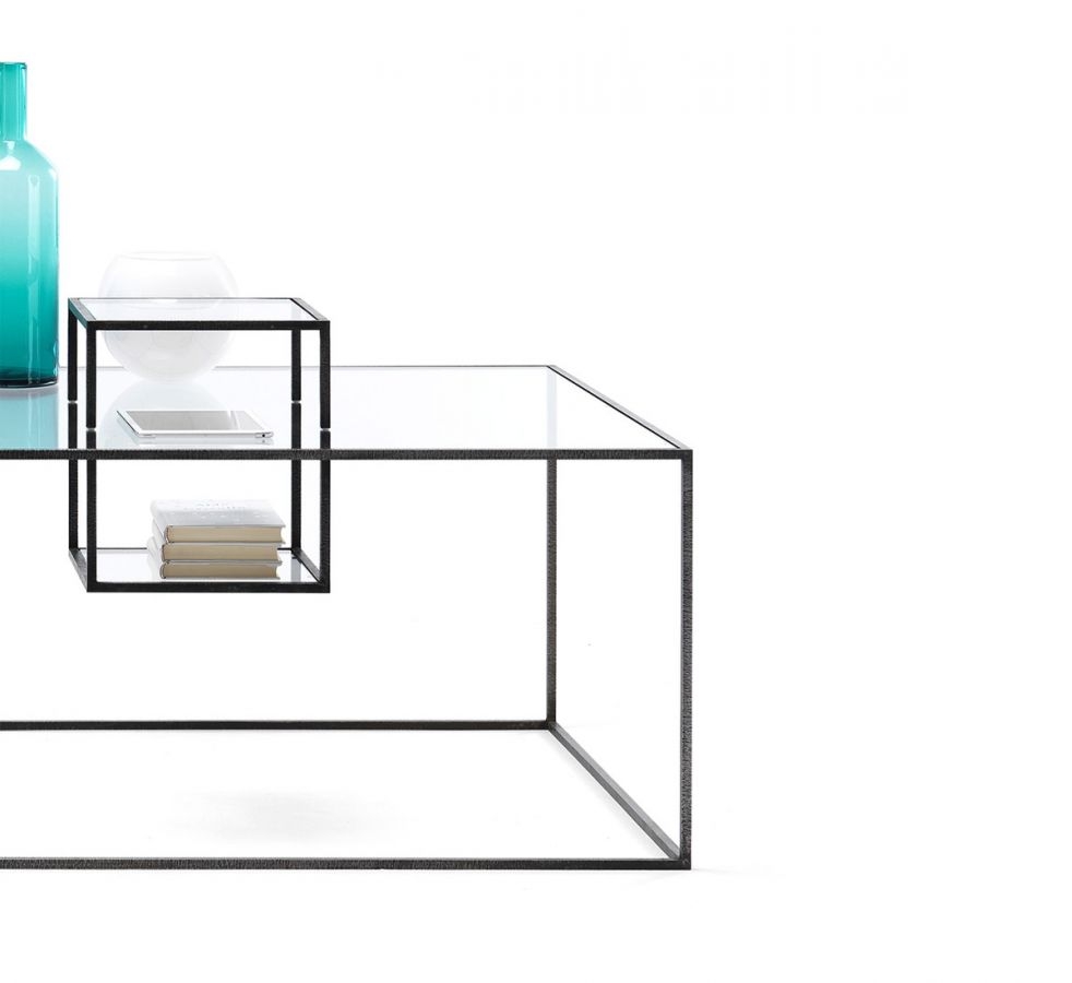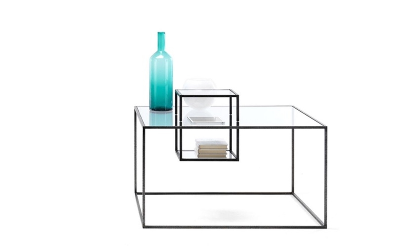 Il tavolino Illusioni è stato disegnato dal designer Sebastiano Tosi per il brand Mogg. Tavolino in vetro con struttura in metallo lavorato a mano e verniciato trasparente opaco brunito.