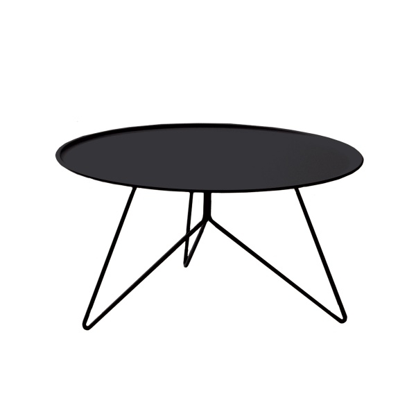 Una morbida scanalatura segue il profilo circolare del piano, che si appoggia su tre gambe sottili in tondino di acciaio che si congiungono al centro, anch’esse in lamiera verniciato a polveri termoindurenti. Link è adatto sia per ambienti interni che all’aperto.