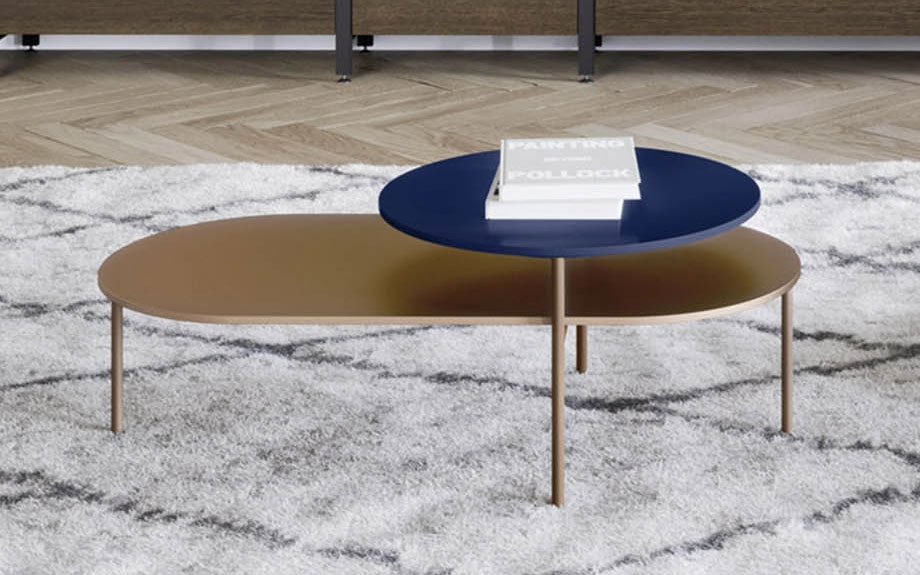 Il tavolino KIN-o di Novamobili per il suo aspetto sofisticato, disegnato da Zanellato/Bortotto è pensato per essere protagonista al centro del living. Le gambe sottili in metallo sostengono due piani posti ad altezze diverse, in quattro diverse configurazioni.