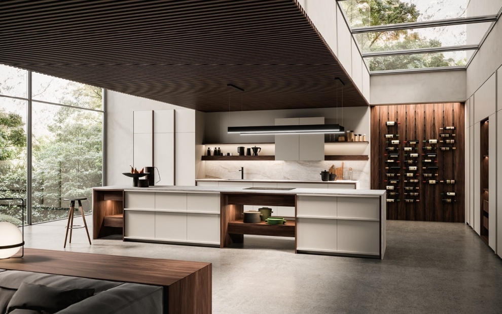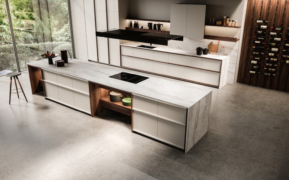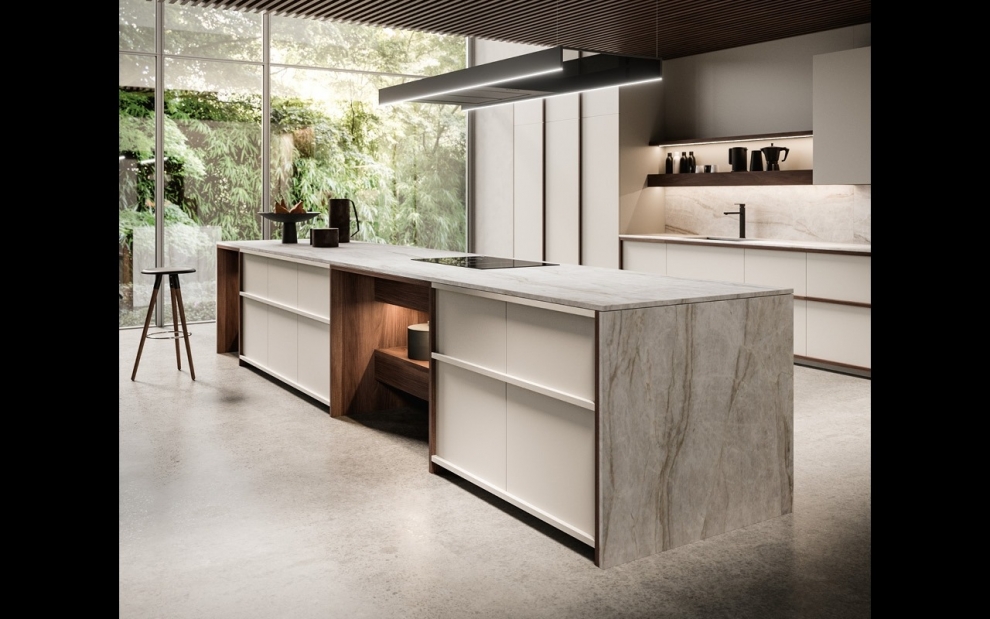 Con K.table si cucina, si lavora, si studia, si condivide: l’isola si evolve in un autentico tavolo conviviale, integrando perfettamente funzionalità ed estetica. Le proporzioni studiate, i materiali di alta qualità e la cura sartoriale dei dettagli permettono a K.table di inserirsi armoniosamente negli ambienti contemporanei, creando continuità tra cucina e zona living.