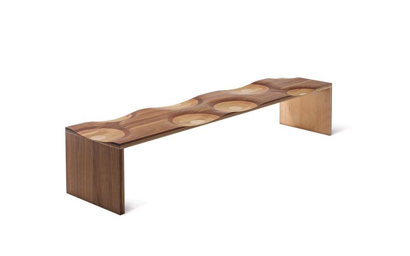 Ripples, vincitrice del premio Compasso d’Oro 2004, è realizzata con un multistrato di cinque differenti legni massello. Le sedute avvolgenti, scolpite con maestria, vengono rifinite interamente a mano per produrre un elegante effetto policromo, grazie alla duttilità del legno. Vera e propria icona del design internazionale, Ripples è una panca adatta sia per l’ambiente domestico che per spazi commerciali o pubblici.