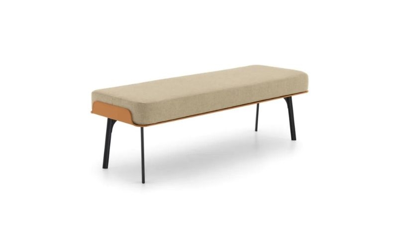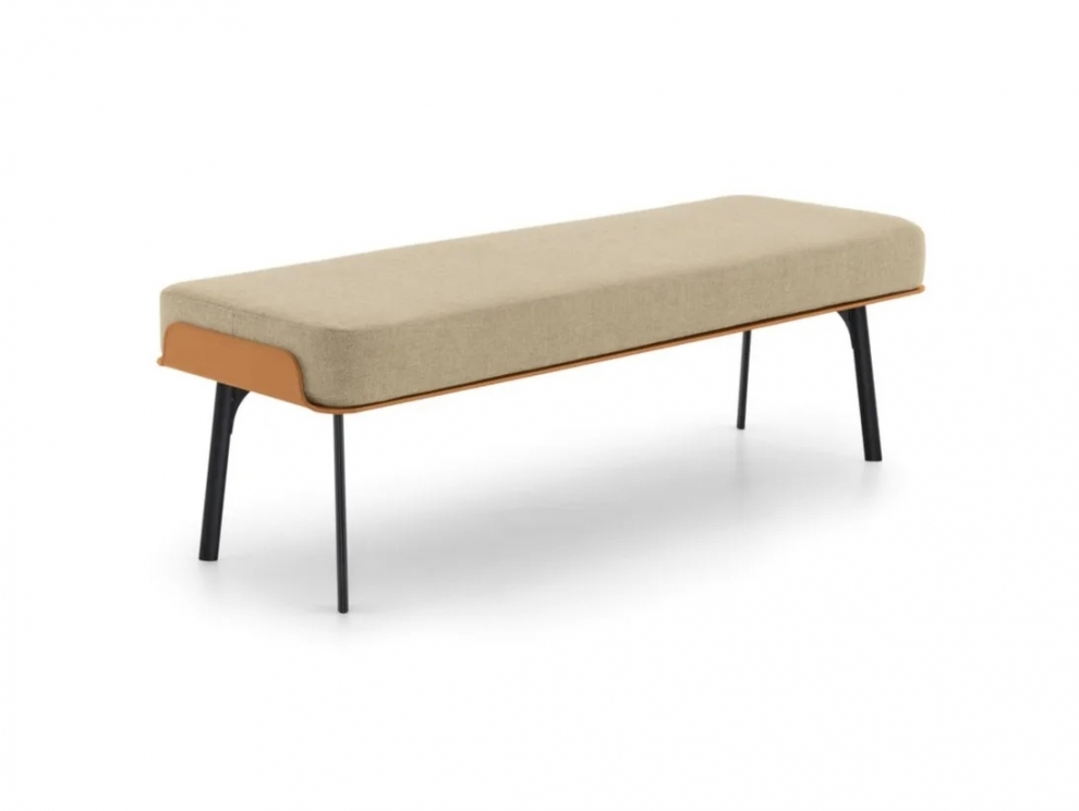La panchetta Gabri nasce dalle linee morbide ed organiche che disegnano il letto Gabri.‎ È caratterizzata da una base in cuoio curata nei minimi dettagli, che avvolge la comoda seduta rivestita in tessuto.‎
