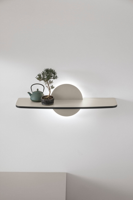 La mensila Moon, con la sua presenza-assenza, la luna scandisce il tempo, la fine e l’inizio di ogni nuova giornata. Il design della mensola Moon si ispira a questo ciclo continuo, vive di luce riflessa e si mostra ovunque in tutta la sua bellezza, di giorno come di notte.