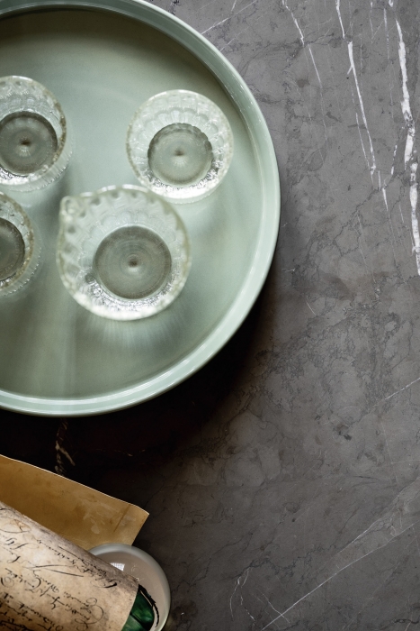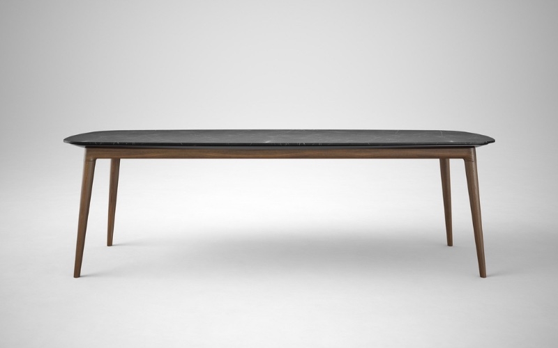 Come in foto: gambe in noce canaletto e piano in marmo grigio Orientale opaco