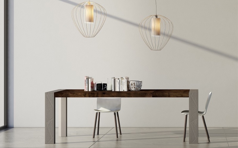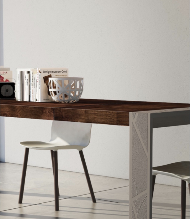 Hai esigenze particolari, dimensioni, finiture, quantità, trasporto, ecc…?Tavolo 555 di Voltan allungabile con struttura telescopica, inserita all'interno del piano, permette di alloggiare l'allunga di 50 cm del tavolo.