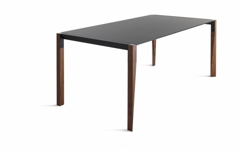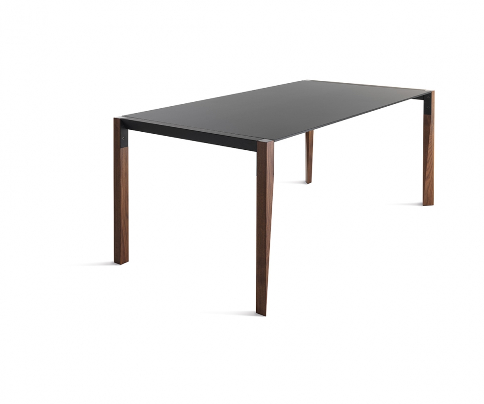 Il tavolo fisso Tango è caratterizzato dalle gambe in legno massello. Piano in Fenix, un materiale innovativo, ottenuto con l’ausilio di nanotecnologie che lo rendono antiimpronta, riparabile dai micrograffi, idoneo al contatto con gli alimenti.