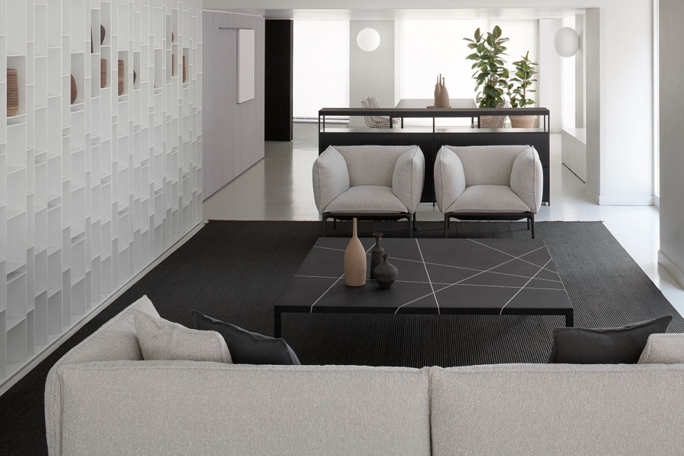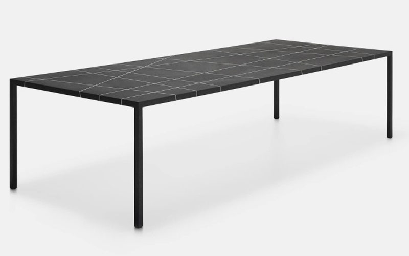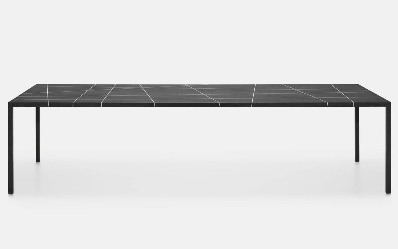 TENSE MATERIAL INTARSIA è un tavolo dalle nuove finiture monomateriche. La significativa innovazione tecnologica racchiusa al suo interno e la capacità dei componenti di mantenersi in tensione, permettono al top di raggiungere grandi dimensioni pur mantenendo una perfetta planarità accompagnata da estrema leggerezza.