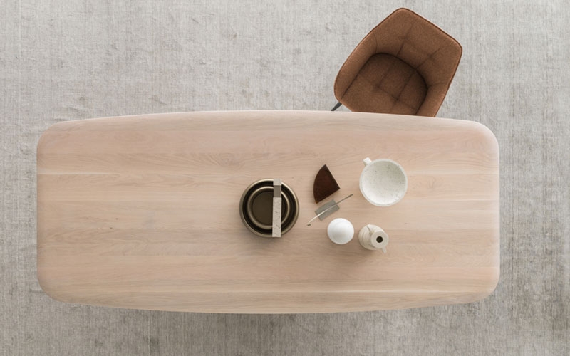 Il tavolo Copenhagen di Devina Nais è un concentrato di bellezza e materiali naturali. Il piano modello Copenhagen in rovere materico si distingue per lo spessore di 3,5 cm e per il bordo a saponetta abbinato alla forma arrotondata che lo rende unico nel suo genere. Per tipo di lavorazione il top non risulta mai uguale da tavolo a tavolo.