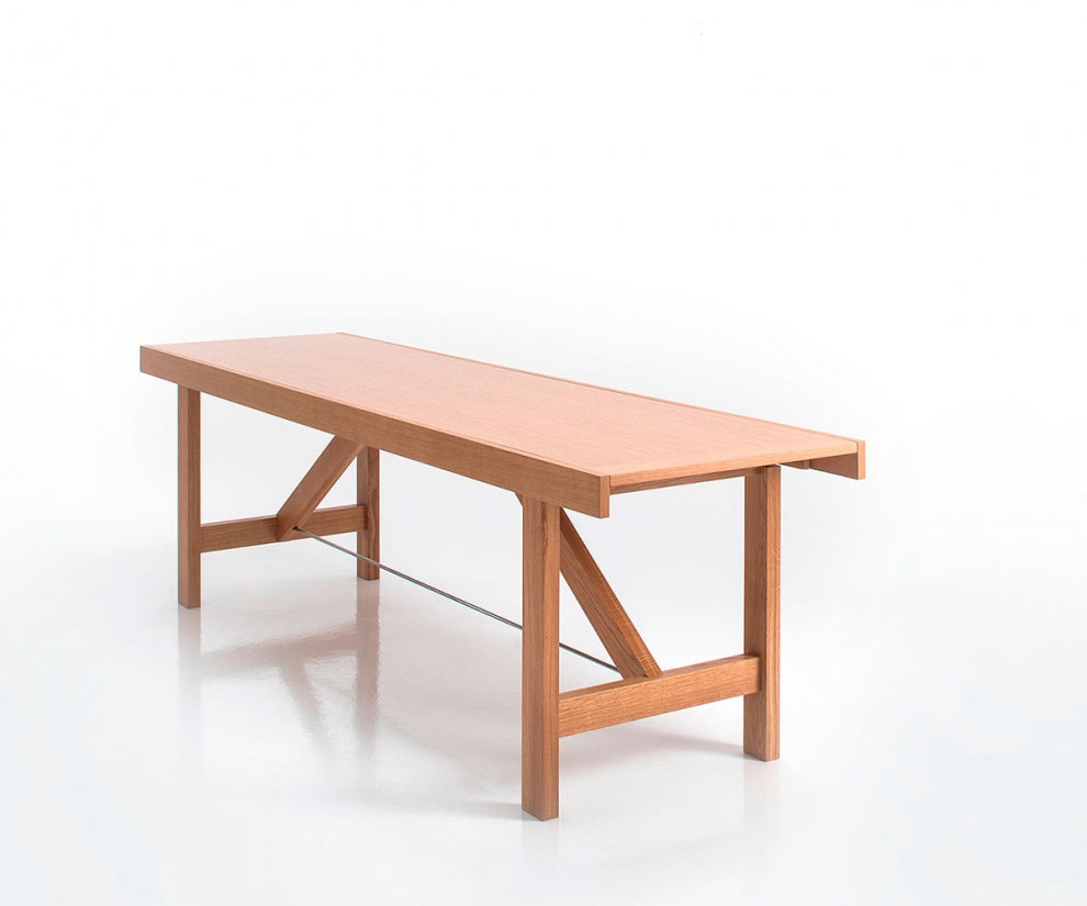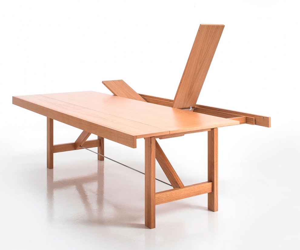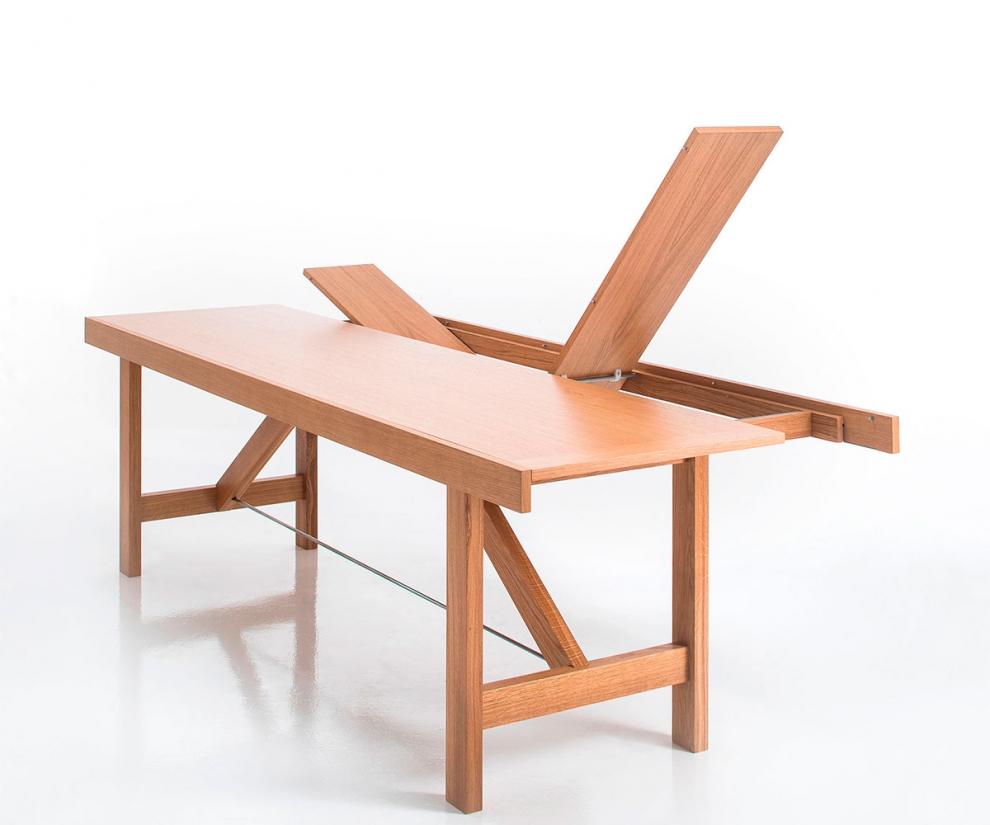 Hai esigenze particolari, dimensioni, finiture, quantità, trasporto, ecc…?Capriata è un tavolo dal piano inusualmente stretto e lungo. Queste proporzioni, oltre ad essere molto pratiche in diverse soluzioni d’arredo, permettono alla struttura portante di essere ben visibile nelle sue perfette proporzioni che riprendono le capriate dei tetti in legno. Il progetto si completa nella soluzione estensibile perché, invece di allungarsi, Capriata ha la particolarità di allargarsi su entrambi i lati lunghi, grazie all'estrazione dei telai di contenimento e alla successiva apertura a libro delle allarghe. Nella sua estensione massima, questo accorgimento permette quasi il raddoppio della larghezza del piano.