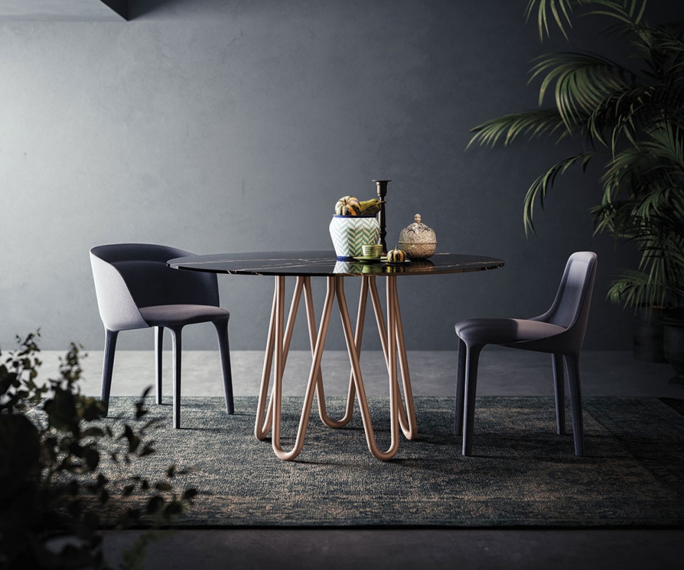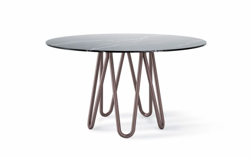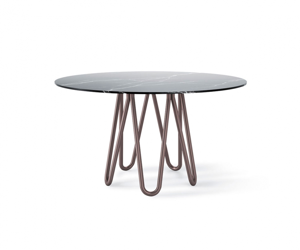 Il tavolo Meduse Marmo di Horme ricorda le simmetrie di questi esseri radiosi, raggiati, traslucidi, forme di vita quasi liquida nel liquido, così flessuose eppure così regolari. Struttura in metallo verniciato e piano in marmo
