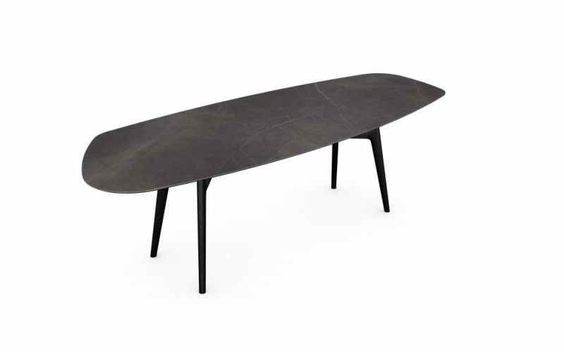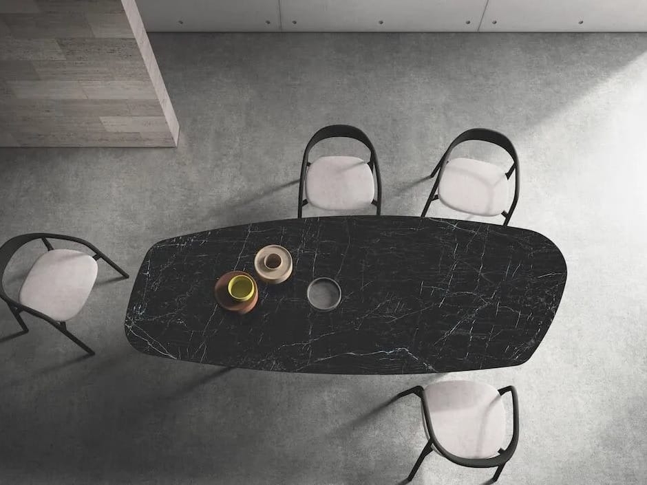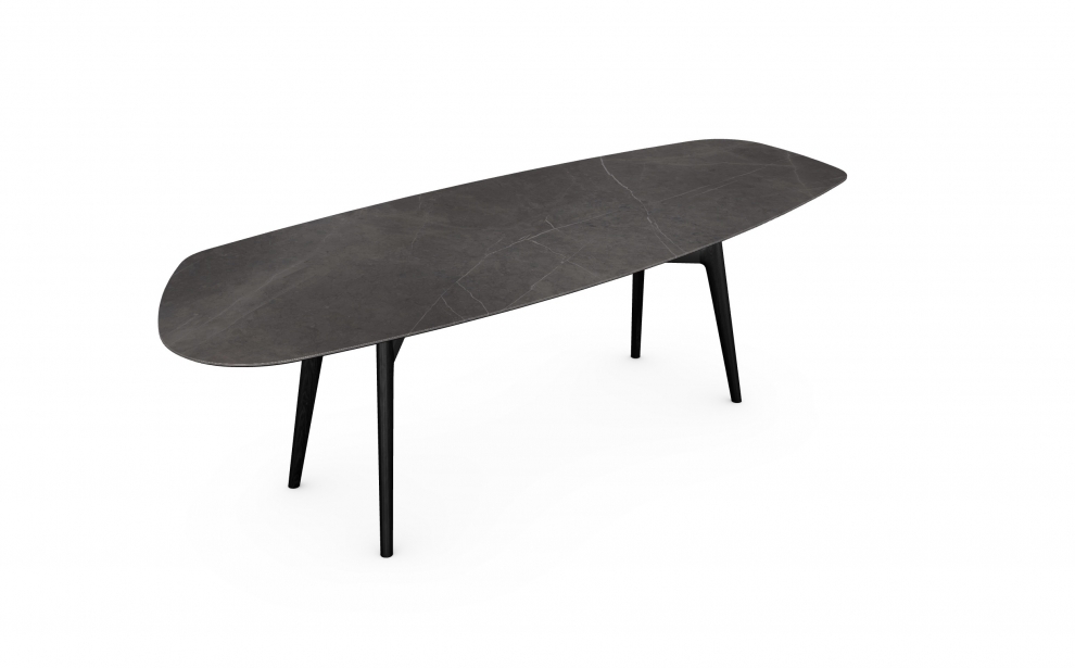 Disponibile anche nella versione allungabile, coniuga estetica e funzionalità, favorendo la convivialità e il comfort quotidiano.