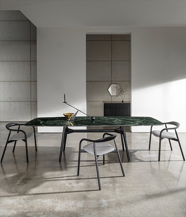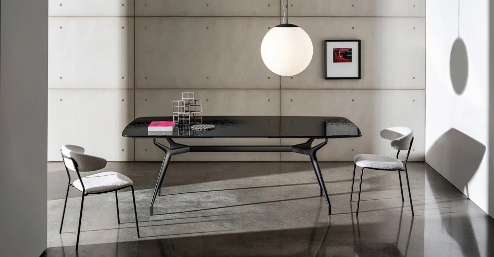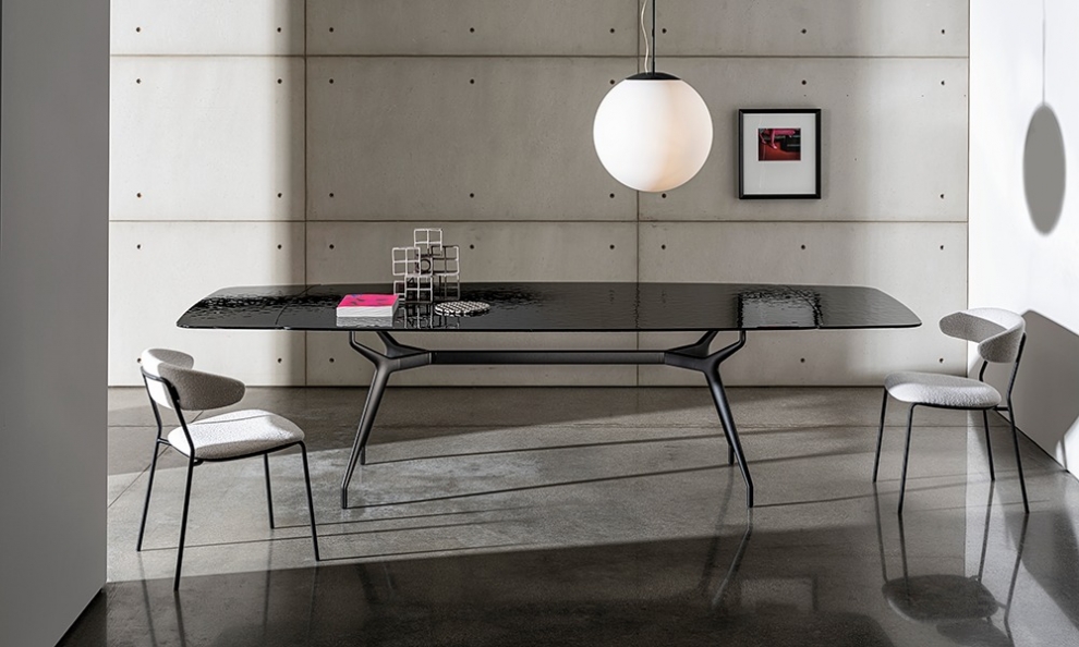 Disponibile in varie misure e finiture, il tavolo è dotato di una struttura allungabile verniciata nera, studiata per garantire stabilità, praticità e un’estetica lineare.
