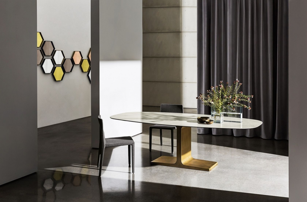 Scopri Palace, il tavolo che ridefinisce l’eleganza e il design contemporaneo. La sua base solida è disponibile in inox satinato, metallo laccato in varie finiture o brunito, per adattarsi perfettamente a ogni stile d’arredo. Il top raffinato può essere scelto in vetro temperato laccato o in ceramica, con una selezione di finiture esclusive che esaltano la bellezza dei materiali.