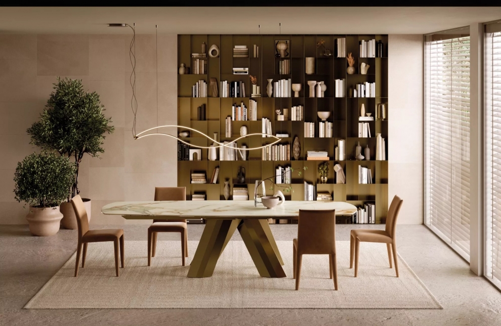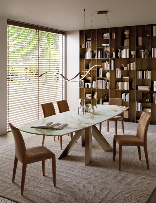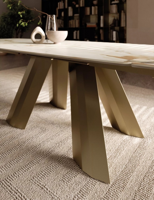 Menhir è un tavolo dalla struttura solida e geometrica, caratterizzata da quattro gambe sfaccettate, modellate come volumi cesellati capaci di catturare la luce e restituirla in un gioco di riflessi e ombre che ne esalta la tridimensionalità.