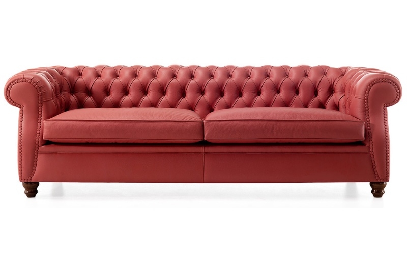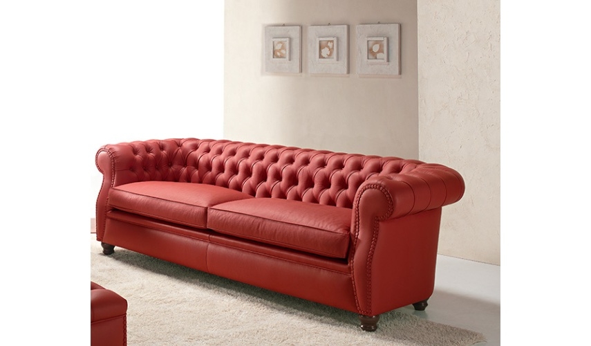 Hai esigenze particolari, dimensioni, finiture, quantità, trasporto, ecc…?Divano Parioli di Art leather, tre posti in pelle con lavorazione capitonnè, con struttura in legno.