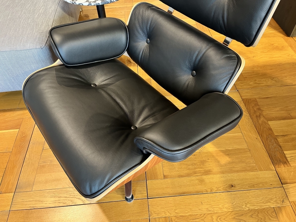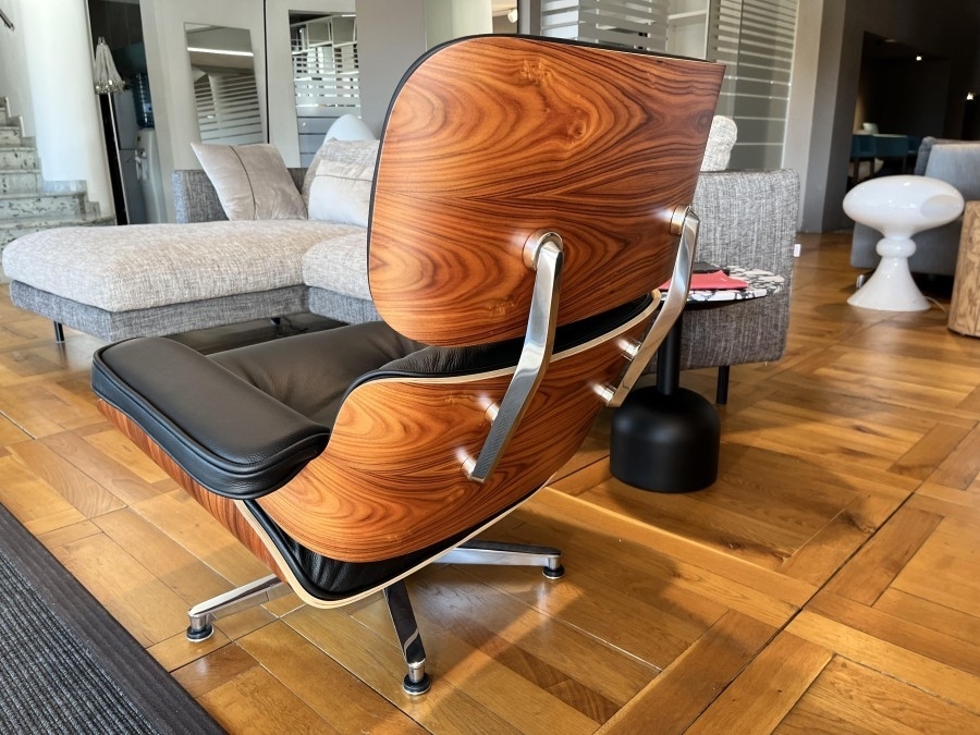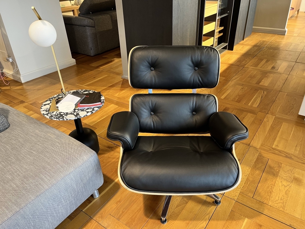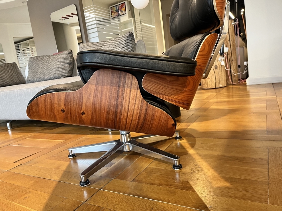 Poltrona di Design, realizzata in legno, con base in alluminio lucido e rivestimento in pelle nera pienofiore. Questa poltroncina girevole è dotata di una base a quattro razze e uno schienale mobile, che permette di modellare la posizione e ottonere una seduta ancora più comoda. La poltrona di design qui proposta combina in maniera ideale design raffinato, massimo comfort e alta qualità di materiali e lavorazioni.