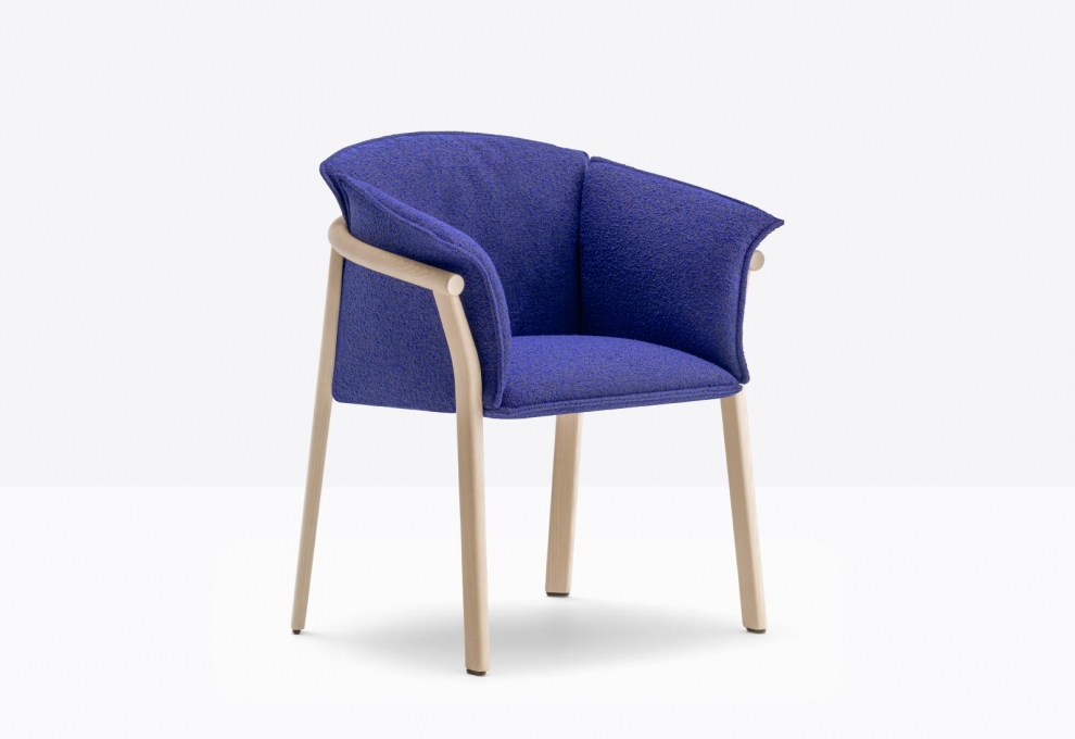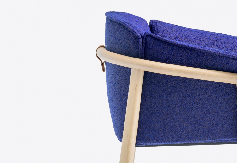 Lamorisse Wood di Pedrali è una poltrona immaginata per essere collocata in ambienti indoor. La sua struttura in frassino la rende perfetta in un’elegante sala da pranzo o all’interno di un raffinato ristorante. La struttura, caratterizzata da un bracciolo a sezione rotonda in frassino curvato al vapore nel quale si innestano le gambe, accoglie un morbidissimo cuscino generoso e avvolgente. Le gambe a sezione ovale si integrano al bracciolo aumentando leggermente di spessore in prossimità degli innesti per garantire maggiore solidità. Una sottile struttura metallica sostiene la seduta. La presenza di cinghie elastiche e lo schiumato poliuretanico indeformabile garantiscono un elevato livello di comfort. Lo schienale e i braccioli, morbidi e avvolgenti, sono sfoderabili e uniti alla seduta attraverso una zip. Una fascetta in cuoio fissa lo schienale alla struttura. Gli elementi di Lamorisse Wood sono facilmente disassemblabili al fine del riciclo e della sostituzione dei componenti.