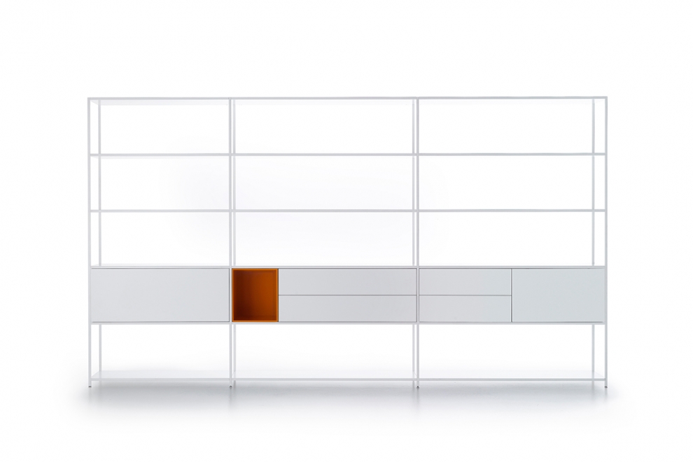 Hai esigenze particolari, dimensioni, finiture, quantità, trasporto, ecc…?Sistema Minima 3.0, Mdf Italia, tre come gli elementi cardine che compongono il sistema: mensola, montante, contenitore.