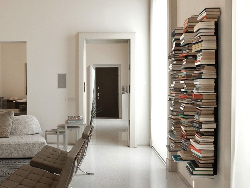 PTolomeo è la soluzione ideale per chi ha poco spazio e può sfruttare la verticalità dell'ambiente. Immaginate le pile di libri sui tavoli dello studio, sul comodino di sinistra o a terra di fianco al letto. O ancora la pila caotica accanto al divano. Adesso traducete questa immagine in un oggetto reale. Ptolomeo, è una pila di libri che restano immobili e così alti da sfidare la gravità. Resterete conquistati dalla sua essenzialità.