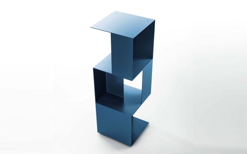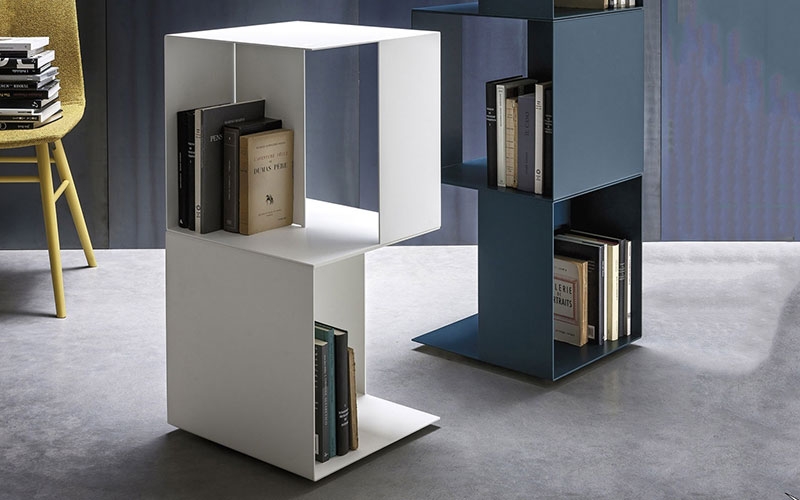 La libreria Freebook è composta da cubi sovrapponibili in metallo, multidirezionali, capaci di colorare e personalizzare gli ambienti domestici.