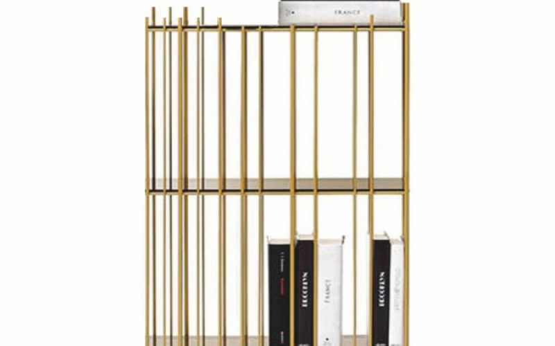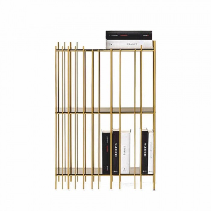 Metrica è una libreria in metallo disponibile nelle finiture titanio, brunito e oro con ripiani in cristallo trasparente disponibili in bronzo o verde. La struttura è semplice, il ritmo è scandito dalle bacchette di ferro fissate a diversi intervalli su una struttura apertamente rigorosa entro la quale i libri e gli oggetti inseriti ne completano la forma scrivendo di volta in volta nuove composizioni.